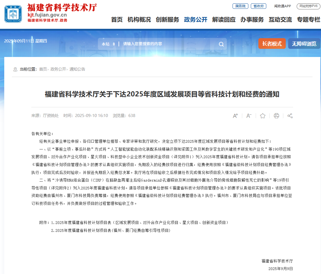 近日,福建省科學技術廳發布《福建省科學技術廳關于下達2025年度區域發展項目等省科技計劃和經費的通知》,水投設計公...